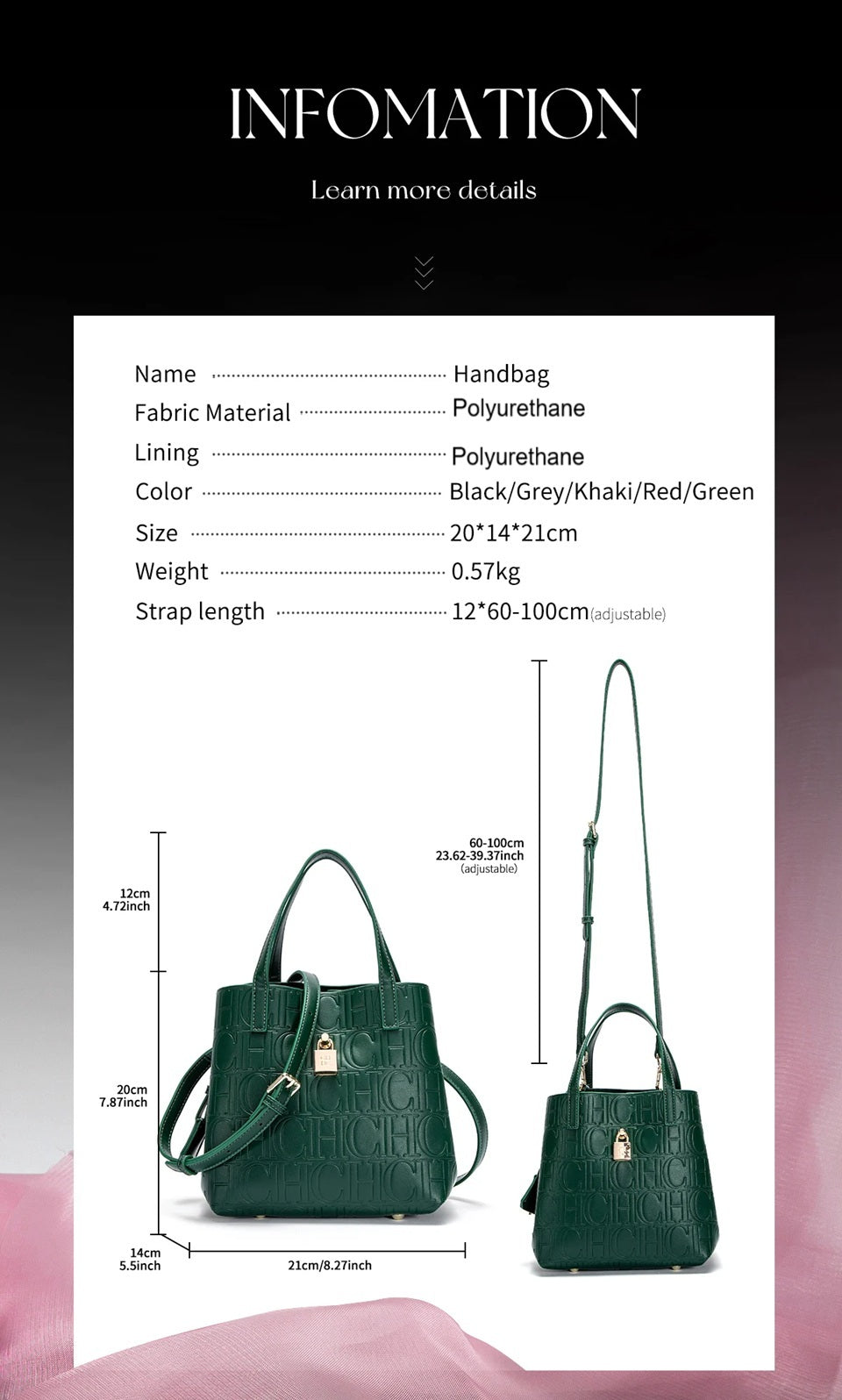Color: Black, Wine red, Gold, Coffee Brown, Khaki, Bronze, Dark Green
