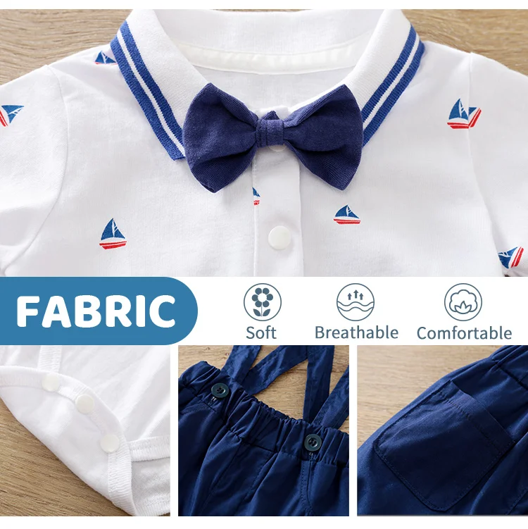 Gentleman Sailboat Print Bodysuit 2Piece Strap Pants + Polo Set