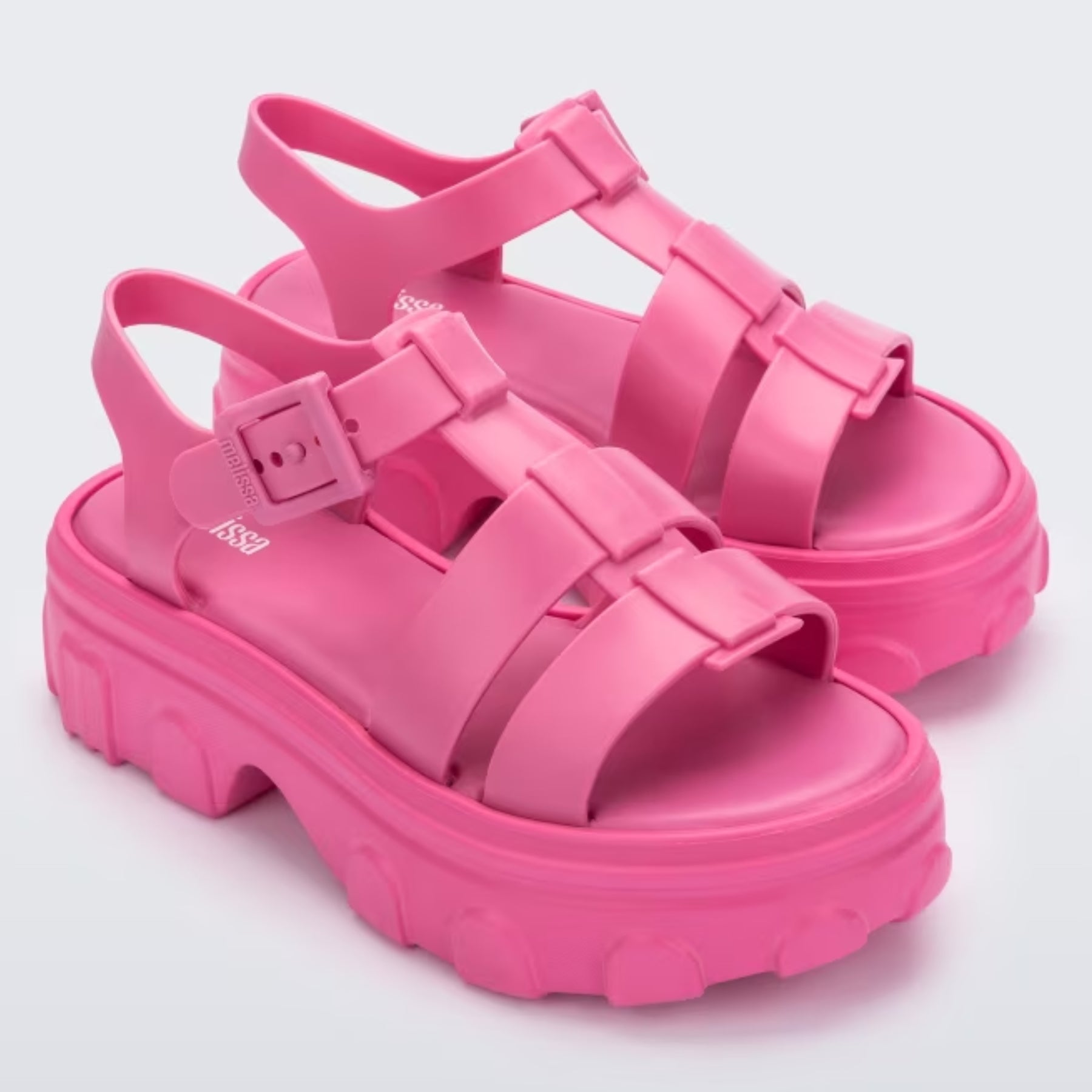 Matte, feminine and elegant, these ridged platform sandals are also robust enough for everyday wear, and let's face it, they go with everything. The tractor sole is EVA foam, so it makes walking a breezy bounce. The top straps and adjustable buckle are all made from recycled flexible Melflex PVC, so you can be ensured comfort and that elevated Melissa glam.