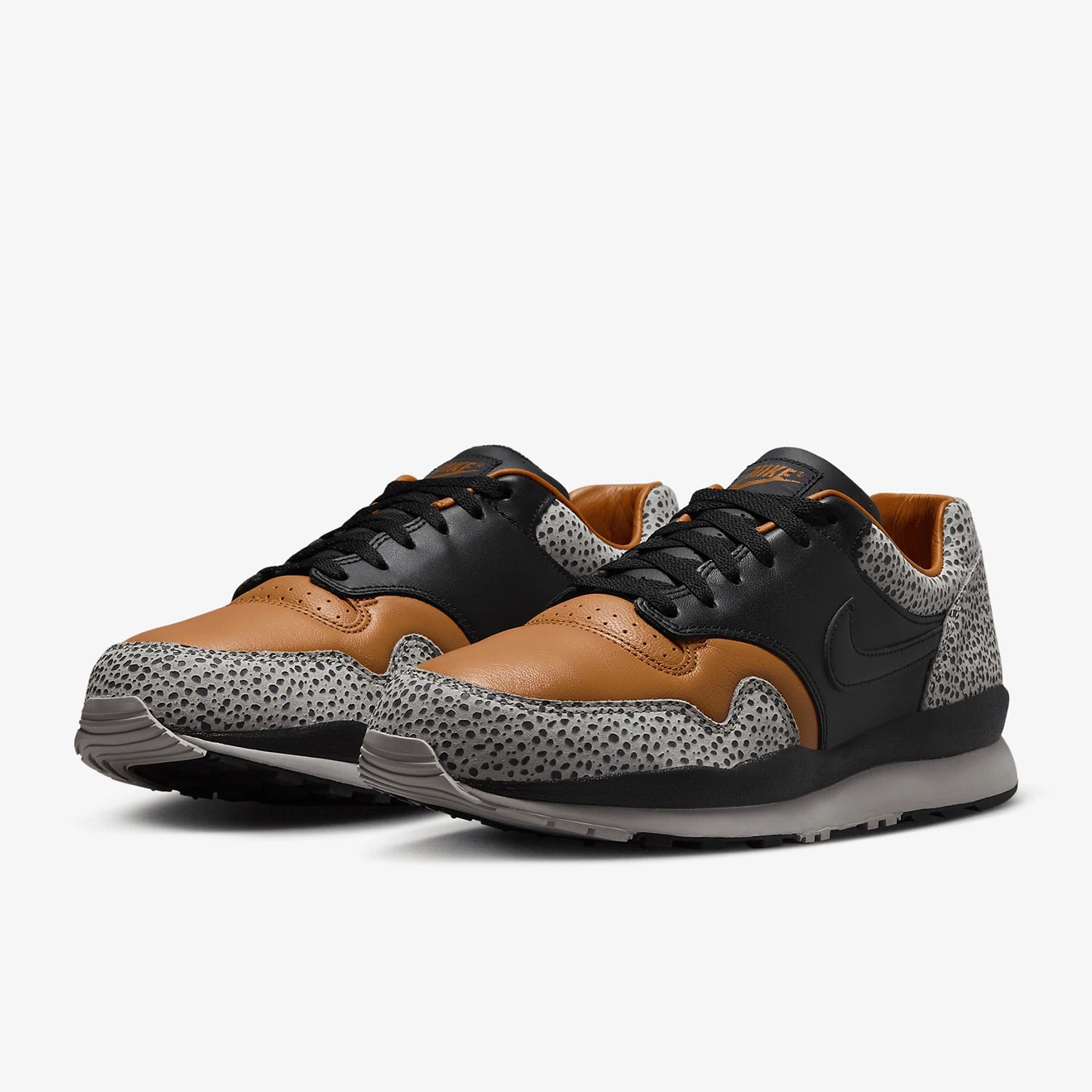 Buckle up, it's Safari time! A cult classic, the beloved Air Safari returns in rich leather and the original color palette. Back in the '80s, "fashion" was still considered a dirty word around Nike, but a young designer by the name of Tinker Hatfield showed up with an architectural background and some bold ideas. While in New York, Hatfield went to a swanky furniture store where he spotted a luxe ostrich leather sofa. Inspired by the distinct texture and patterning of the ostrich leather, Hatfield knew he had to bring that look to life in a modern sneaker. He sketched up some ideas, and the Air Safari was born. Welcome back to the origins of a true icon.