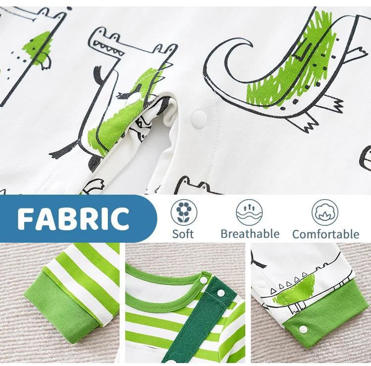 Spring And Autumn Unisex Cute Cartoon Strap Crocodile Printed Cotton Comfortable Long Sleeve Baby Bodysuit