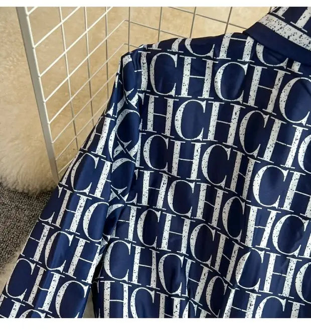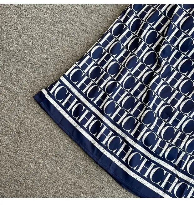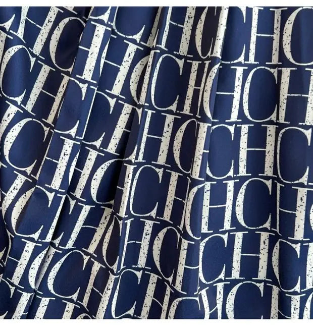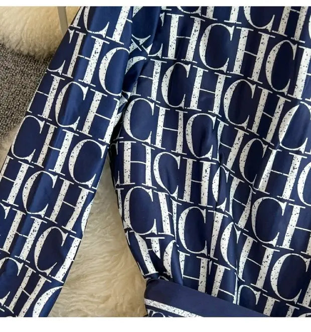 This Carolina Herrera Monogram dress features a pullover closure and subtle lace-up accents, offering a sleek slim fit. Crafted from quality materials, it showcases a refined turn-down collar and an eye-catching printed pattern. Designed with long sleeves and a waist-cinching silhouette, the A-line shape provides a flattering, elegant look perfect for spring and autumn.