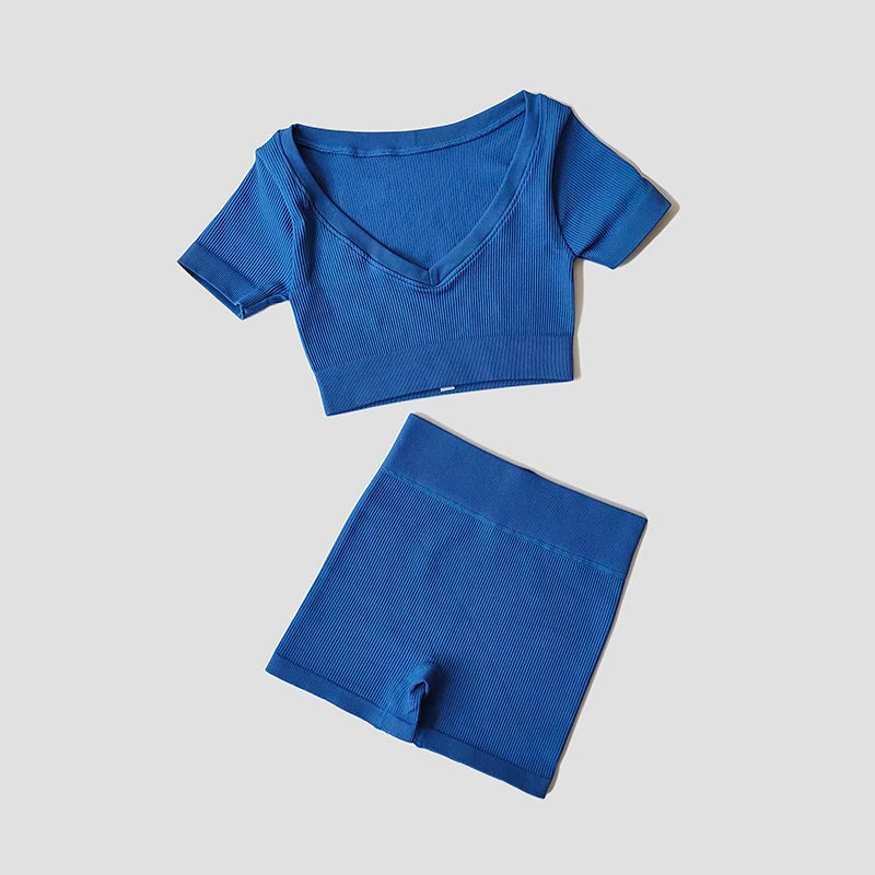 Women Hight Waist Seamless Sports Shorts + Sport Crop Top Set