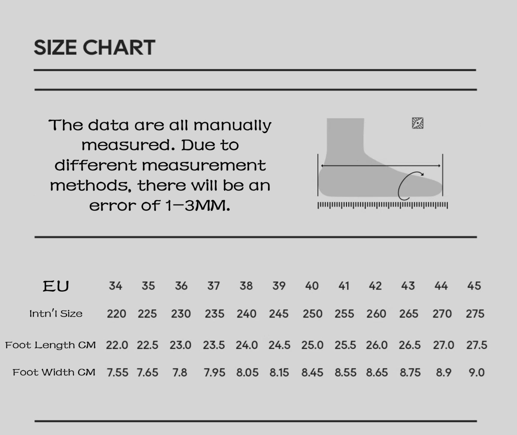 Note: Manual measurement with ±0.5CM tolerance. Actual dimensions may vary.